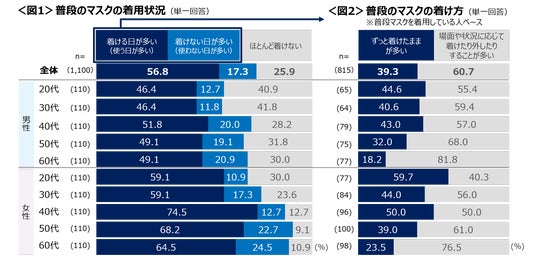 普段「マスクを着ける日が多い」人が半数超え マスクは「他人への配慮」として着用してほしい