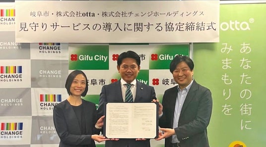 岐阜県岐阜市(岐阜市長:柴橋正直、以下「岐阜市」)と株式会社チェンジホールディングス(本社:東京都港区、代表取締役兼執行役員社長:福留大士、以下「チェンジHD」)および株式会社otta(本社:福岡県福岡市、代表取締役社長:山本文和、以下「otta」)は本日10月3日(金)、岐阜市内の「見守りサービスの導入に関する協定書」を締結しましたのでお知らせいたします。