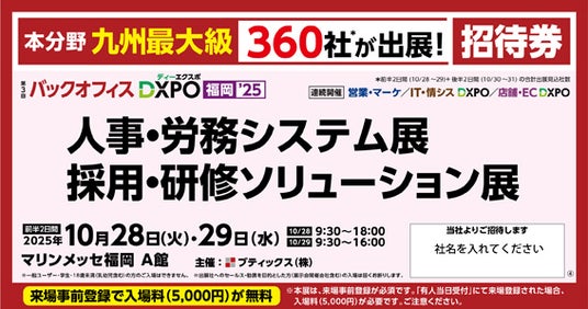 イベント名: DXPO 福岡'25(10/28~29:バックオフィスDXPO、10/30~31:営業・マーケDXPO)会期: 2025年10月28日(火)~10月31日(金)