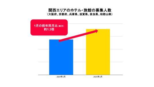 地域別ではインバウンド需要やホテル開業が進む関西エリアで募集人数増加