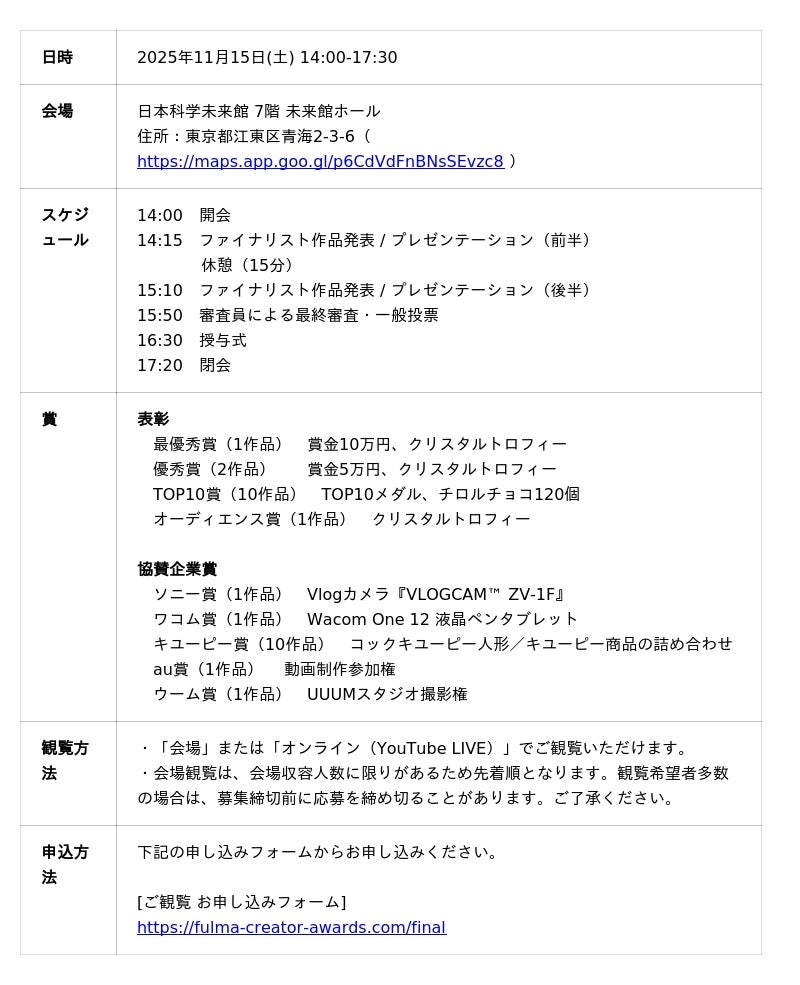 全国小中学生動画コンテスト FULMA Creator Awards 2025 について
