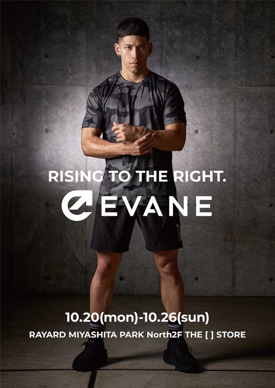 EVANE(エバン)は、登録者数100万人超の人気フィットネスYouTuber・山澤礼明監修のもと、「トレーニングと日常をつなぐ」ことをコンセプトに、機能性とデザイン性を兼ね備えたスポーツアパレルを展開するD2Cブランドです。2024年のローンチ以降、Amazonや直営オンラインストアで好評をいただき、全国でのPOP UP展開や直営店出店も予定しています。