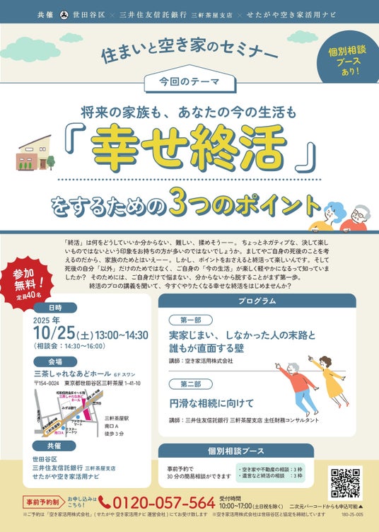 【参加無料】世田谷区主催「幸せ終活」を学ぶ!住まいと空き家のセミナー|10/25(土)