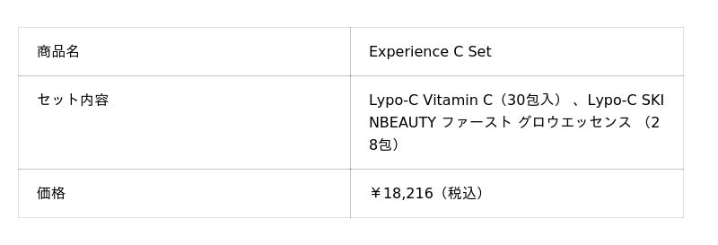 はじめての体験に最適な、Lypo-C SKINBEAUTY特別キット。