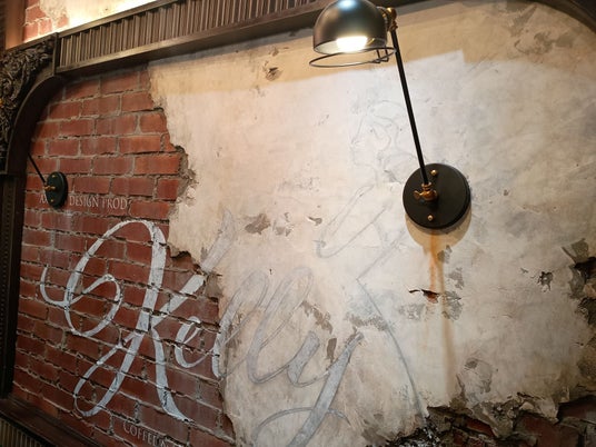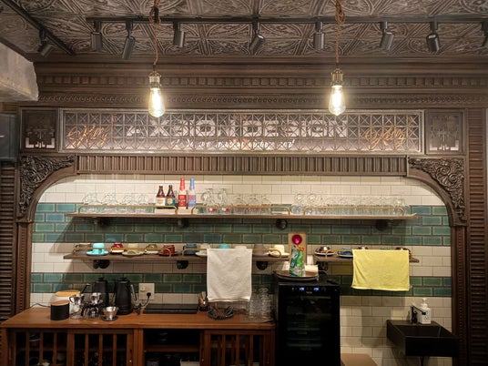 水出しコーヒーと映画ドラマの美術チームによる天井装飾、壁面チョークアート
