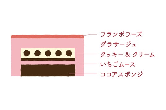 に、しっとり食感のココアスポンジとクッキー&クリームを忍ばせました。仕上げにはフラ