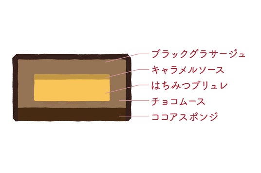 い甘さのチョコムースの中に、香ばしいキャラメルソースとはちみつブリュレを忍ばせまし