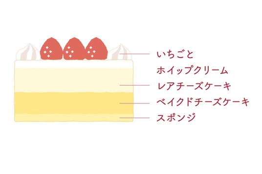を重ねて2層に仕上げました。クリームチーズのなめらかな口当たりと甘酸っぱいいちごの
