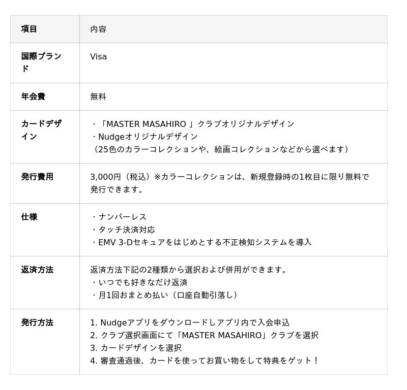 「MASTER MASAHIRO」クラブへのご入会で、クラブ限定のオリジナルデザインカードを発行いただけます。