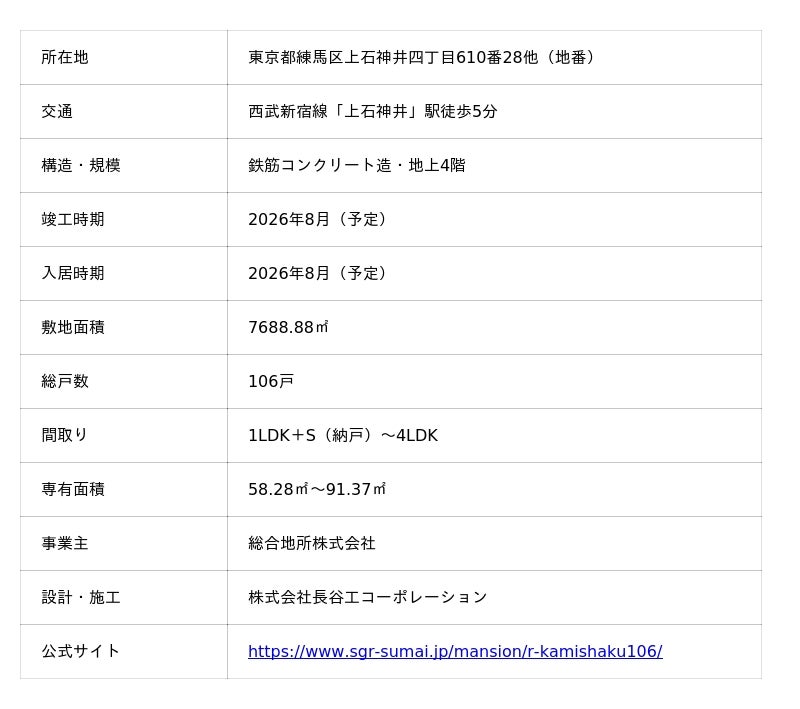 総合地所株式会社(本社:東京都港区、代表取締役社長:梅津 英司 以下、「当社」)は、新築分譲マンション「ルネグラン上石神井」(以下、「本物件」)の第1期販売(25戸)が完売しましたことをお知らせします。