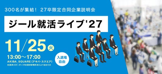 新卒採用支援と就活イベントを手がける株式会社ジールコミュニケーションズ(本社:東京都渋谷区、代表取締役:薮崎 真哉)は、27卒学生を対象とした大規模合同企業説明会『ジール就活ライブ'27』を、2025年11月25日(火)に秋葉原・AKIBA_SQUAREにて開催することを決定しました。