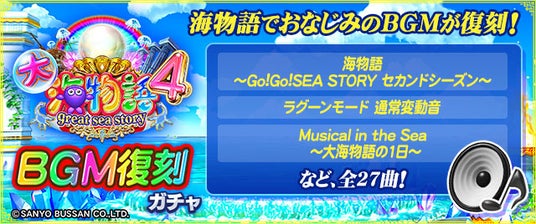 BGM「海物語~Go!Go!SEA STORY セカンドシーズン~」をはじめとする、コラボBGMアイテムが期間限定で登場します。