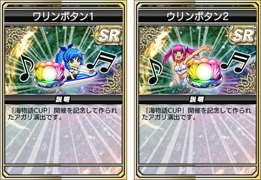 進化型SPキャラ(UR)「マリンちゃん4」や、進化型SPキャラ(SSR)「ウリン(2D)2」「ワリン(2D)2」といった『海物語』に登場するキャラクターをはじめ、『海物語』をイメージしたアガリ演出、卓背景、EX枠、EX背景などコラボアイテム全60種が期間限定で登場します。