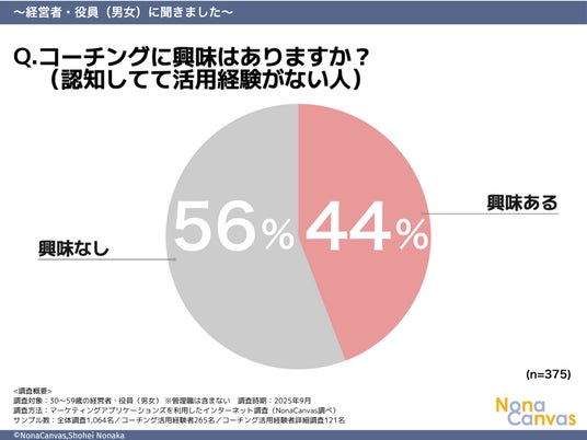 ■コーチング認知者のうち、興味がある層:44%