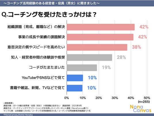 経営者・役員調査で明らかになったコーチング市場実態、メディア経由は1割、人的ネットワークと課題解決ニーズが導入を後押し