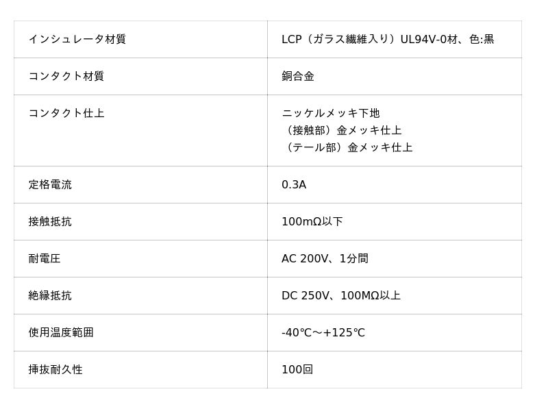 ・コネクタの使用温度範囲は-40℃から+125℃です。(通電による温度上昇含む)