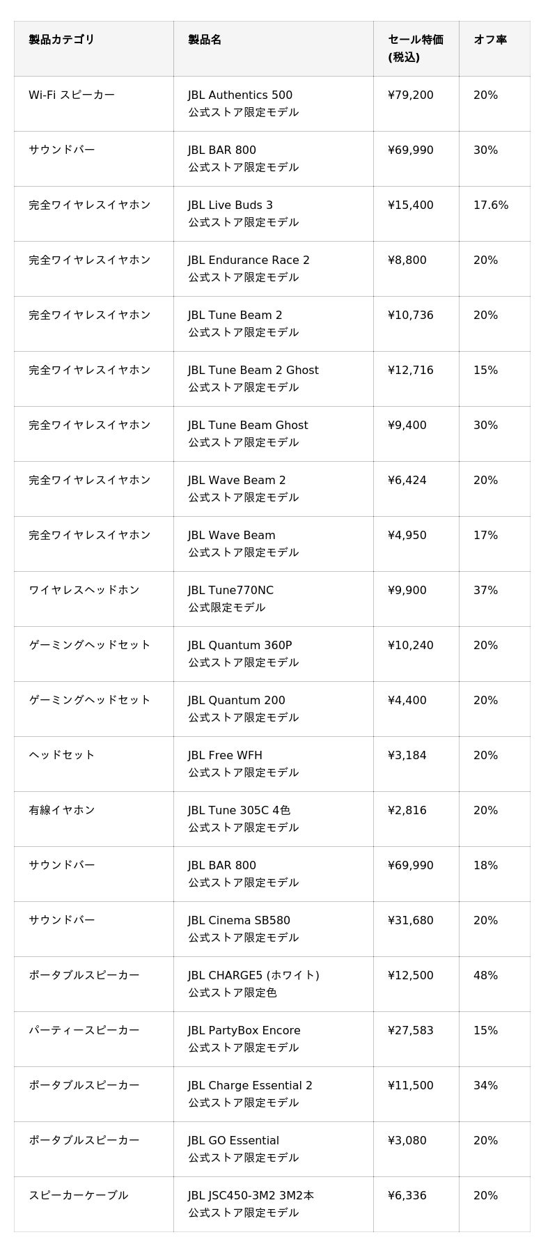 ※オフ率は、JBL公式サイトにおける2025年10月2日時点の販売価格を基準に当社が算出した数値です。
