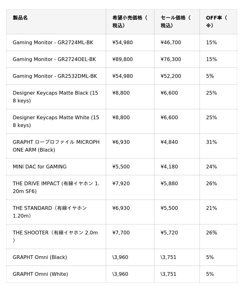 この度、2025年10月4日(土)から10月13日(月)まで『GRAPHT AUTUMN PREMIUM SALE』を開催します。本セールは、GRAPHT OFFICIAL STORE(ECサイト)、GAMING CENTER by GRAPHT Amazonブランドストア、および全国の家電量販店やPC専門店などで一斉に実施。7月に発売されたばかりのモニターや、ゲームパッド、イヤホンなど、ゲーミングライフをアップグレードする12製品を、最大31%オフの特別価格でご提供いたします。この機会にぜひGRAPHT製品をお得にお求めいただければ幸いです。