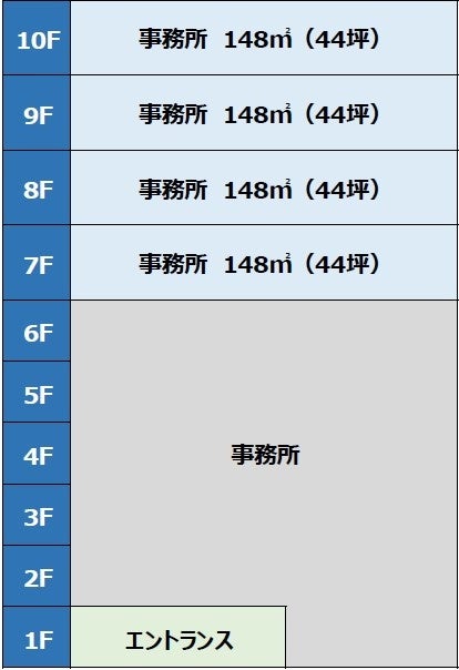 7~10階は1フロア1テナントの家具什器付きセットアップ区画