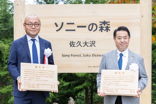 ソニーネットワークコミュニケーションズ株式会社(本社:東京都港区、代表取締役社長:中川 典宜)は、2009年11月に長野県佐久市大沢財産区(管理者:佐久市長 柳田 清二)と「森林(もり)の里親」協定(※)を締結し、2010年4月に同財産区の森林の一部を「So-netの森」と命名して森林整備活動を行ってきました。このたび、森林の名称を「ソニーの森(佐久大沢)」に変更し、グループ社員による森林整備活動や地域交流などの活動を拡充してまいります。