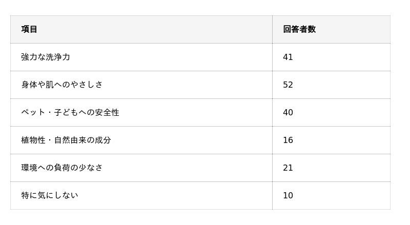 ・エアコンクリーニングで使用する洗剤については「身体や肌へのやさしさ」「ペット・子どもへの安全性」を重視しているが「強力な洗浄力」も両立したい。
