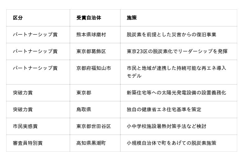 「市民が選ぶ!カーボンゼローカル大賞」立ち上げ 初の受賞先決定地域の脱炭素・快適な暮らしを実現する先進自治体を表彰