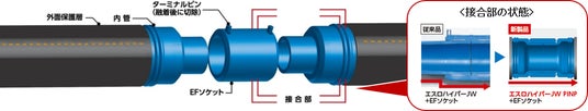 「エスロハイパーJW PINP」は通常の施工方法であるEF融着による接合で、