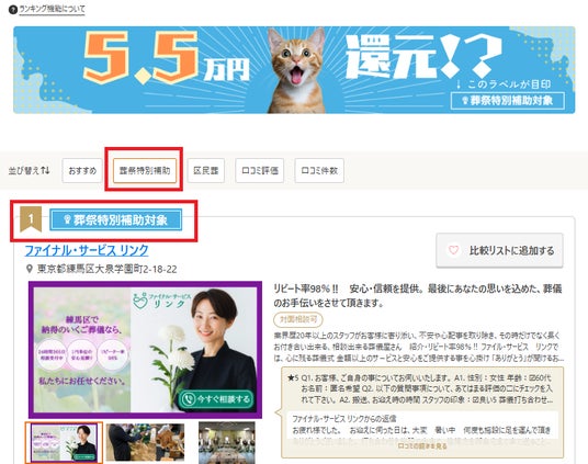 「葬祭特別補助」のバッジがついた葬儀社が対象