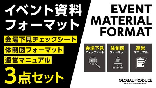 「【2025年最新版】プロ監修!イベント運営に欠かせない3点セット」をダウンロードする:https://www.global-produce.jp/downloads/formats-event-3piece-set/