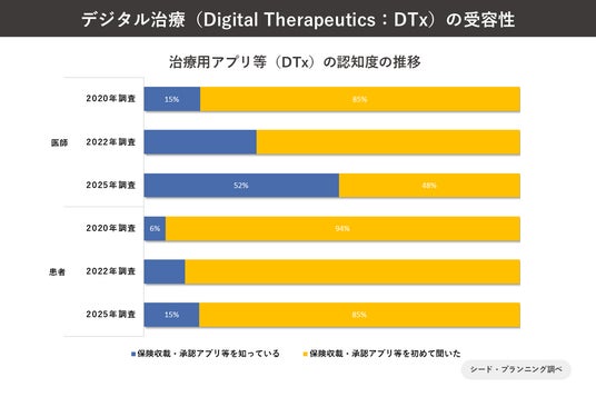 株式会社シード・プランニング(本社:東京都文京区 梅田佳夫社長、以下シード・プランニング)は、保険適用が進むデジタル治療(Digital Therapeutics:DTx)について、医師と患者の双方に今回で3回目となるアンケート調査を継続実施したほか、欧米のDigital Therapeuticsの最新動向をとりまとめ、その結果を公開したことをお知らせいたします。