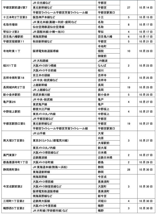 10月にオープンおよびオープン予定の「パーク&ライド」に適した駐車場は46件、「レール&カーシェア」に適したステーションは88件です。