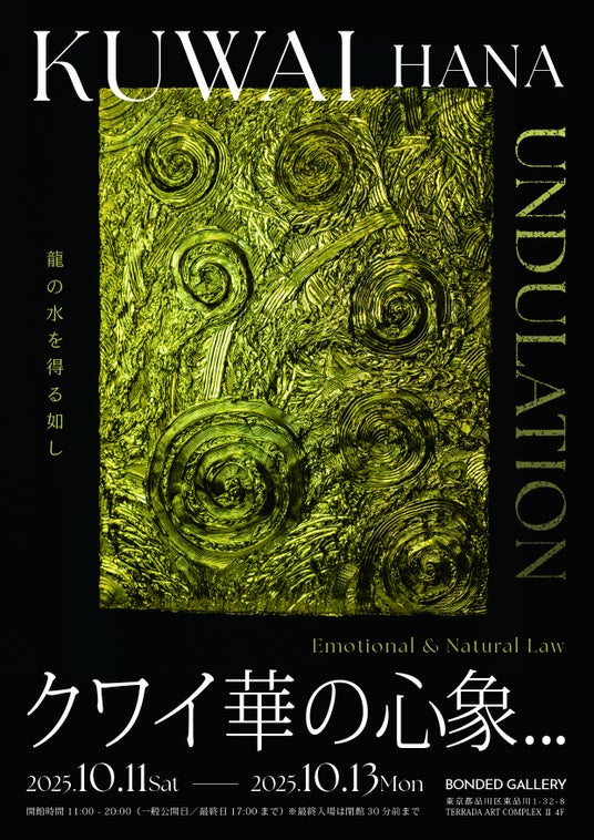 カスタムハーレーの名工として研ぎ澄まされた工業精度と、心象を形にする芸術性が融合し、唯一無二の作品を生み出すアーティスト、クワイ華のアートブランド「UNDULATION」。その世界観は『THE RAKE JAPAN』『Richesse』『Horlogerie』といったラグジュアリー誌に取り上げられ、国際的にも注目を集めています。2025年10月、天王洲アイル「BONDED GALLERY」にて開催される個展では、国際公募展「#Gold」展 #2 にて最優秀賞を受賞した「MANDALA F8号」を含む新作群を公開。圧倒的な質量感と精緻な造形が織りなす「うねり」を、空間全体で体感できる機会となります。
