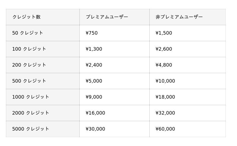 2 クレジット / 1 回 (1 回につき 4 枚生成)