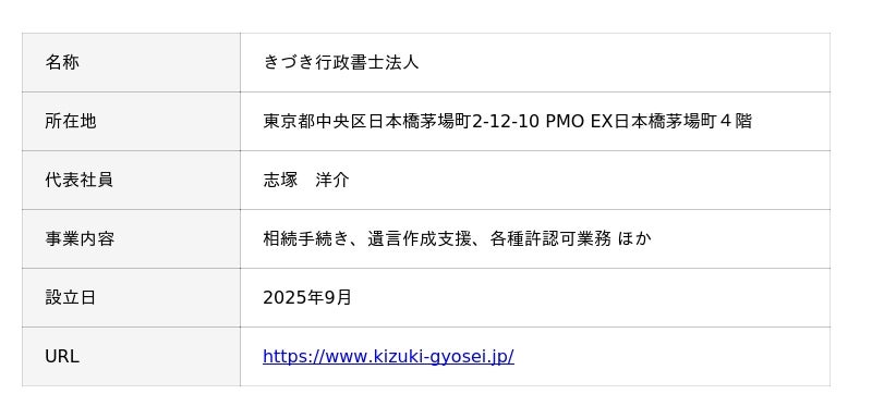 きづきアセット株式会社(本社:東京都中央区、代表取締役:谷本 圭治、以下「当社」)は、お客さまの「相続手続き」「遺言書作成」をより強力にご支援するため、グループ内に「きづき行政書士法人」を設立いたしました。