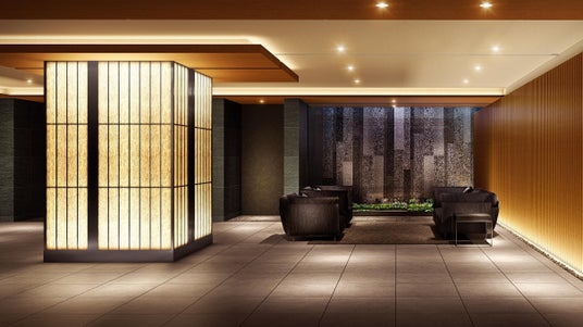 木目で描く縦のラインを施したエントランスアプローチや、ラウンジには光の柱による間接照明を置くなど、歴史ある風情を表現しています。また駐車場は、住戸に対して100%の台数を確保しており、その一部には大型車対応区画やEV充電器を備えています。