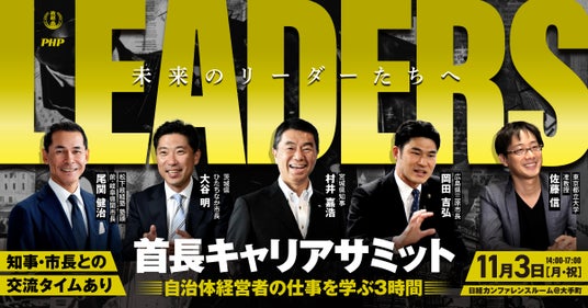 公益財団法人松下幸之助記念志財団 松下政経塾(塾長:遠山敬史、塾頭:尾関健治)と株式会社PHP研究所(代表取締役:瀬津要)は、2025年11月3日(月・祝)、日経カンファレンスルーム(東京都千代田区)にて、自治体経営者としての首長について学べる首長キャリアサミット「LEADERS(リーダーズ)」を開催します。