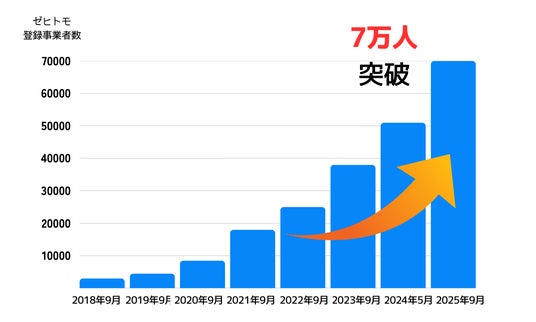 株式会社Zehitomo(本社:東京都品川区、代表取締役:三浦雄一郎)が運営する、くらしのマッチングサービス「ゼヒトモ」は、2025年9月にリフォーム関連サービスにおける登録プロ(事業者)が累計7万人を突破したことをお知らせいたします。