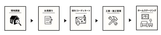 そこでカグカスはこの課題を解決すべく、再販事業者様の物件価値を最大化するだけでなく、購入されるお客様の理想の住まいを実現するワンストップオペレーションを展開しています。このサービスでは、企画段階の調査費用から意匠設計、そして家具配置・工事代金までを一気通貫でパッケージ化することでコストを最適化。より効果的に他社にはない魅力的な物件の提供をサポートいたします。