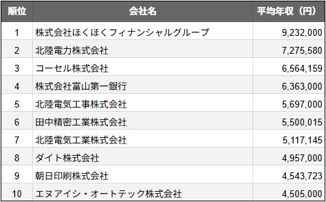【2025年最新版】富山市:上場企業平均年収ランキングTOP10/SalesNow DBレポート