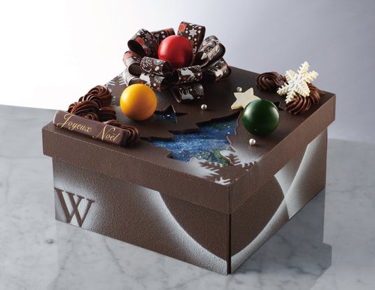 ツリー型の窓から覗く満点の星空や豪華なリボンなど、全てチョコレートで作られたプレゼントBOX。星空はショコラティエが一つ一つ手作業で描き上げるため、全く同じものはない世界に一つだけのデザインです。