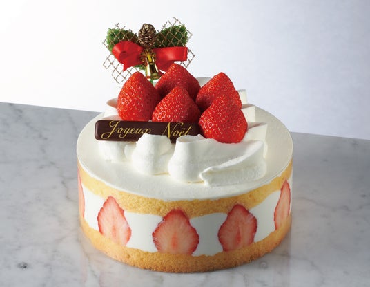 口どけなめらかなクリームとスポンジに苺をサンドした、クリスマス限定デザインのデコレーションケーキ。きめ細やかなスポンジと甘さ控えめのクリームが苺の甘酸っぱさを引き立てます。