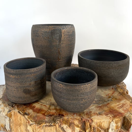 金城宙矛 やちむん鉢 左上:結.long 、右上:結.M 、左手前:嘉例.G、右手前:結