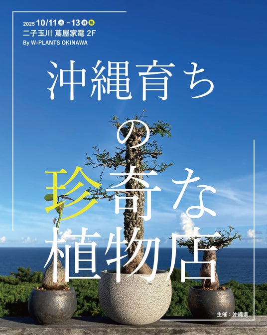 その沖縄で1947年に創業した老舗の苗種店が運営するグリーンショップ「W-PLANTS」(ダブルプランツ)」から、200鉢以上のグリーンを直送。沖縄の農園として過去最大規模で、珍奇・希少植物を県外展開します。