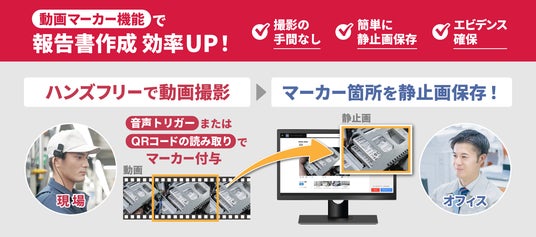 株式会社ザクティ(本社:大阪市北区、代表取締役社長:喜久川 政樹、以下「ザクティ」)は、遠隔支援やエビデンス記録を主とする「現場DXソリューション」の新機能として、報告書作成が楽になる『動画マーカー機能』を2025年10月中旬にリリースいたします。本機能により、現場作業者が撮影した動画から必要なシーンのみをかんたんに静止画として保存できるようになります。