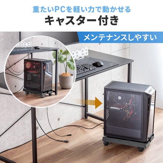 CPUスタンド デスクトップ用 耐荷重30kg ゲーミングPC パソコンラック パソコンスタンド キャスター付き ほこり対策 無段階調整