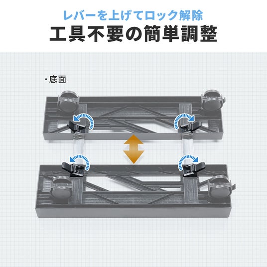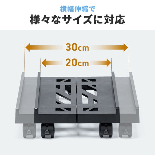 スリムタイプから大型ゲーミングPCまで、幅20~30cmの本体に対応。無段階で横幅を調整できるから、機種を選ばずピッタリ設置できます。