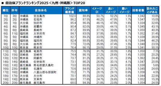 大東建託株式会社(本社:東京都港区、代表取締役 社長執行役員 CEO:竹内啓)は、18万人を超える回答を集めた大規模なブランド調査を行い、「いい部屋ネット 自治体ブランドランキング2025<九州・沖縄版>」として集計しました。