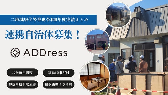 毎月定額制の多拠点居住プラットフォーム「ADDress」を運営する株式会社アドレス(本社:東京都千代田区、代表取締役社長:佐別当隆志、以下ADDress)は令和6年度の公共政策事業において、北海道中川町、福島12市町村*、神奈川県伊勢原市、和歌山県すさみ町と「空き家・空き室」といった遊休資産の利活用に関する事業に取り組みました。「#全国創生」をミッションに掲げるADDressでは、各地方自治体・関連団体と連携して空き家・空き室等の物件調査および拠点開発を行い、全国各地で二地域居住・多拠点居住用の住居確保に力を入れています。また、ADDressの特長である「家守(やもり)制度:各物件ごとの“地域の案内人”および物件管理人」をすべての物件に取り入れることで、当地に縁のない滞在者(会員)でも、「家守」を通して普段の生活の延長線上として地方暮らしを体験できる機会を提供しています。令和6年度に地方自治体・関連団体との連携事業でオープンした物件、ならびにオープンが確定し今後ADDressへ登録予定の物件を紹介します。