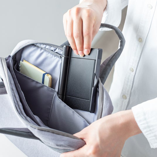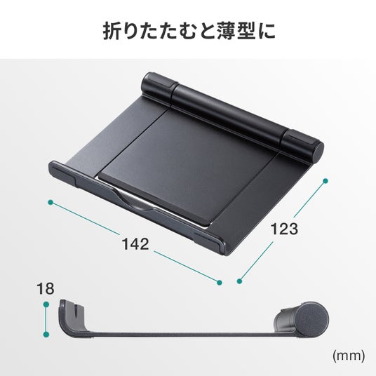 カバンのポケットなどにも入れやすいスリムなデザインのスタンドです。コンパクトになるので、省スペースに収納できます。