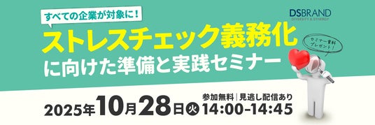 健康経営支援ツール『おりこうブログHR』を提供する株式会社ディーエスブランド(本社:長崎県長崎市 販売本部:東京都中央区、代表取締役社長:下山大祐)は、無料オンラインセミナー「すべての企業が対象に!ストレスチェック義務化に向けた準備と実践セミナー」を2025年10月28日(火)に開催することをお知らせいたします。